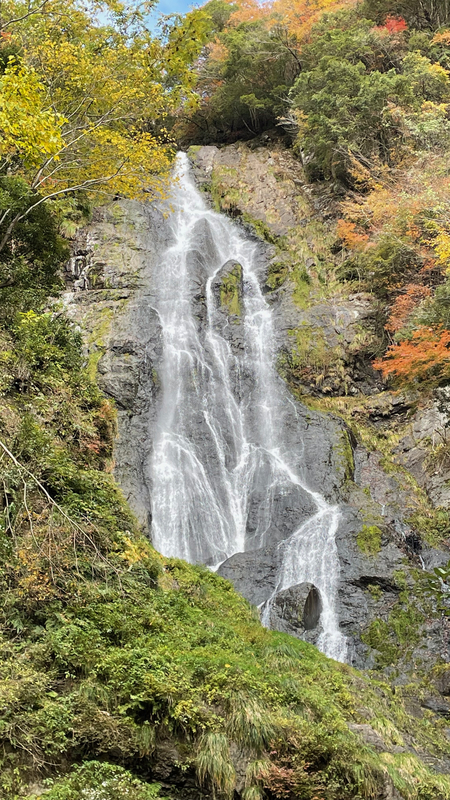 紅葉がまだ残っててラッキーだった。水量はそれほどでもないけど、高さは110mあってかなりのもの。中国地方では大きい滝のようだ。